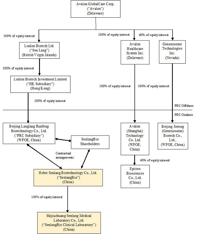 Both before and immediately after the Acquisition, Avalon was not and will not become a Chinese operating company, but will remain as a Delaware corporation. While Avalon is not a PRC operating company, certain of its subsidiaries are PRC operating companies and through them Avalon currently has substantial operations in the PRC. Sen Lang BVI, the company Avalon is seeking to acquire, is a BVI holding company with its operations conducted by its subsidiaries and through contractual arrangements with variable interest entities (“VIEs”) based in China. Sen Lang BVI, through the VIE structure (described in more detail in the section of the accompanying proxy statement titled “The Acquisition—The VIE Structure”) of contractual rights held by its wholly-owned subsidiary Beijing Langlang Runfeng Biotechnology Co., Ltd., a wholly foreign owned enterprise with limited liability organized and existing under the laws of the People’s Republic of China (the “PRC”) (the “PRC Subsidiary”), is deemed to have a controlling financial interest and be the primary beneficiary of, and is consolidated for accounting purposes with, Senlang Biotechnology Co. Ltd., a PRC domestic company with limited liability organized and existing under the laws of the PRC (the “OpCo” or “SenlangBio”), however, the PRC Subsidiary is a holding company and is not a Chinese operating company. The consolidation is due to Sen Lang BVI’s having (i) the power to direct activities of SenlangBio that most significantly impact SenlangBio’s economic performance and (ii) the obligation to absorb losses of SenlangBio that could potentially be significant to SenlangBio, or the right to receive benefits from SenlangBio that could potentially be significant to SenlangBio, in accordance with Financial Accounting Standards Board (“FASB”) Accounting Standards Codification (“ASC”) 810-10, Consolidation. See “Summary of the Proxy Statement—The VIE Structure.” SenlangBio operates its business in China and is mainly engaged in the business of research and development in relation to CAR-T cell therapy, immune cell therapy and related drug development. SenlangBio is owned 100% by certain of the Sen Lang BVI Beneficial Shareholders. A wholly-owned subsidiary of SenlangBio, Shijiazhuang Senlang Medical Laboratory Co., Ltd., a company with limited liability organized and existing under the laws of the PRC (“SenlangBio Clinical Laboratory”) operates its business in China and is engaged in the business of testing of immunology, serology and molecular genetics specialties for patients, including hematology-tumor diagnostics and testing prior to clinical trials for cell therapy. For a more detailed discussion of the business of SenlangBio and SenlangBio Clinical Laboratory, please see the section entitled “Information about SenlangBio.”