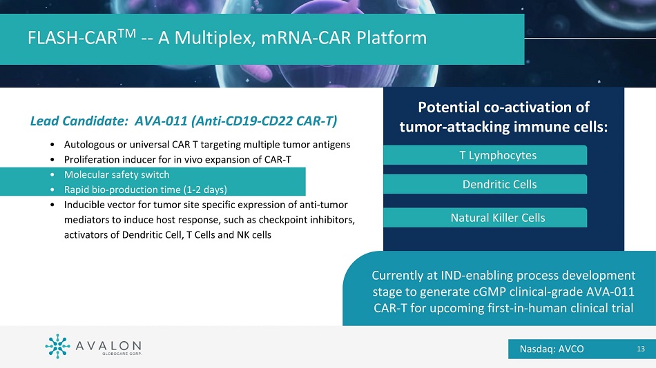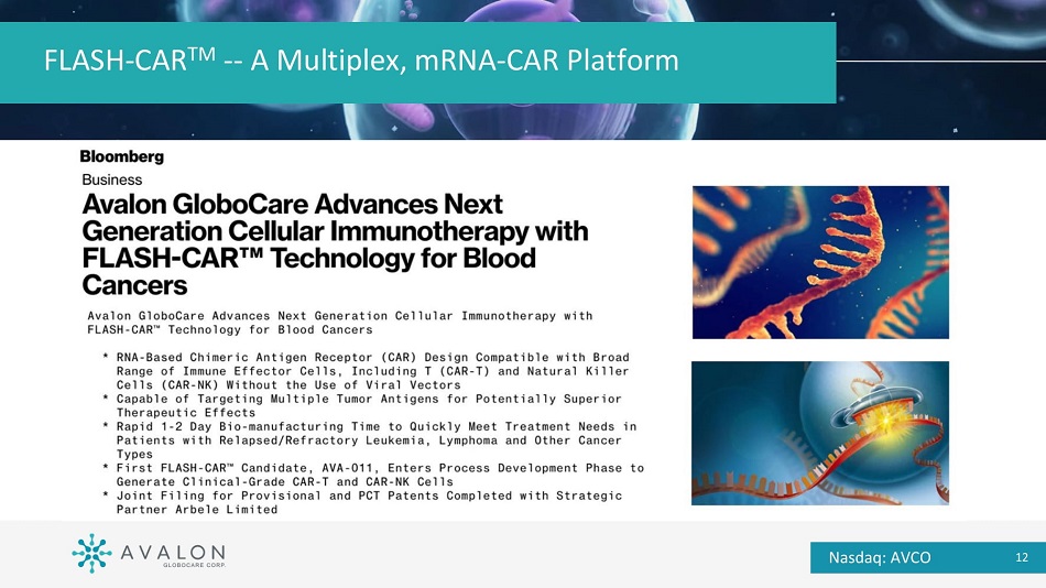 FLASH - CAR TM - - A Multiplex, mRNA - CAR Platform Nasdaq: AVCO 12