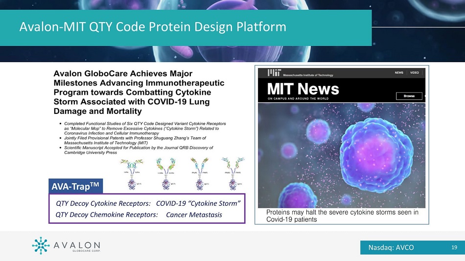 Avalon - MIT QTY Code Protein Design Platform Nasdaq: AVCO 19