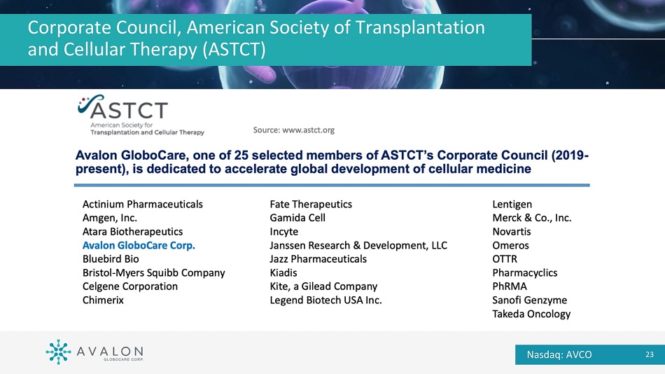 Corporate Council, American Society of Transplantation and Cellular Therapy (ASTCT) Nasdaq: AVCO 23