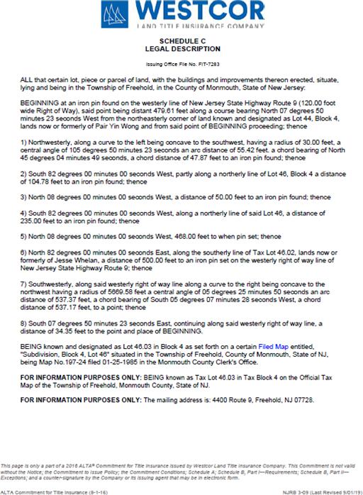 | Premises: 4400 Route 9, Freehold, NJ 07728 | |||